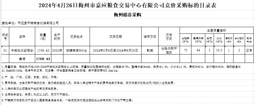 三、交易資格:在梅州市嘉應糧食交易中心有限公司成功報名并提供單位有關資料的單位。