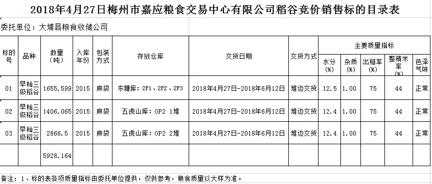 交易時(shí)間和地點(diǎn):2018年4月27日(星期五)上午10時(shí)。廣東省梅州市彬芳大道南161號(hào)梅州市糧食交易中心3樓。